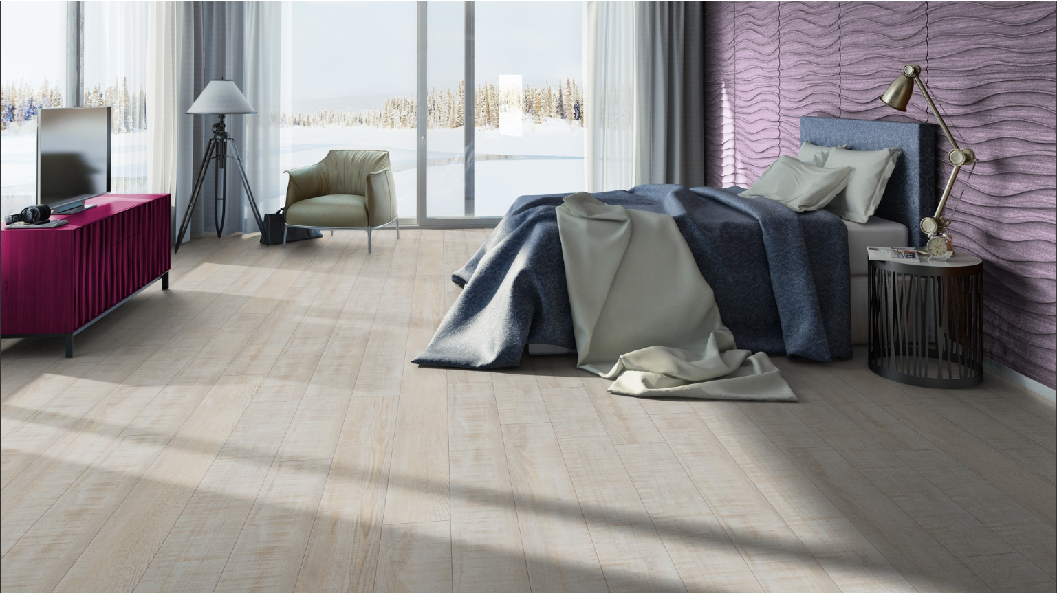 Четырёхсторонняя фаска создаёт эффект натурального напольного покрытия и визуально расширяет пространство. Благодаря модульности форматов (914×152 мм, 1280×183 мм, 653×131 мм, 457×457 мм) и разнообразию фактур под дерево, камень и текстиль, коллекция позволяет реализовать уникальные дизайнерские решения.