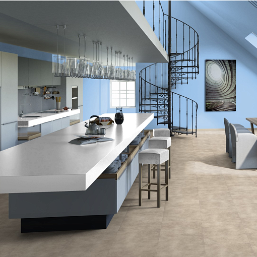 Четырёхсторонняя фаска создаёт эффект натурального напольного покрытия и визуально расширяет пространство. Благодаря модульности форматов (914×152 мм, 1280×183 мм, 653×131 мм, 457×457 мм) и разнообразию фактур под дерево, камень и текстиль, коллекция позволяет реализовать уникальные дизайнерские решения.