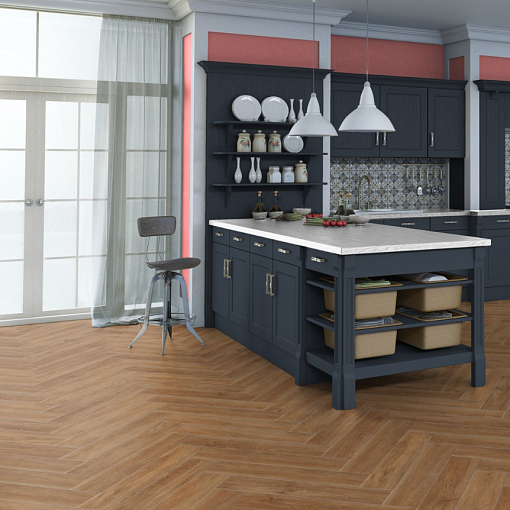 Четырёхсторонняя фаска создаёт эффект натурального напольного покрытия и визуально расширяет пространство. Благодаря модульности форматов (914×152 мм, 1280×183 мм, 653×131 мм, 457×457 мм) и разнообразию фактур под дерево, камень и текстиль, коллекция позволяет реализовать уникальные дизайнерские решения.