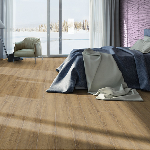 Четырёхсторонняя фаска создаёт эффект натурального напольного покрытия и визуально расширяет пространство. Благодаря модульности форматов (914×152 мм, 1280×183 мм, 653×131 мм, 457×457 мм) и разнообразию фактур под дерево, камень и текстиль, коллекция позволяет реализовать уникальные дизайнерские решения.