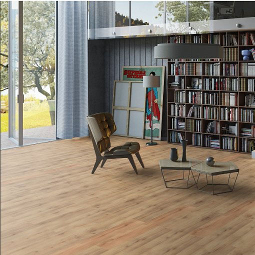 Покрытие имеет толщину в 2,1 мм, из которых 0,4 мм приходится на защитный слой. Размер досок составляет 182,9 х 1280,2 мм. В каждой упаковке метражом 2,809 квадратных метра находится по 12 досок.